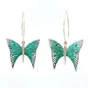 Ταξιδέψτε σε έναν κόσμο φαντασίας με τα χειροποίητα σκουλαρίκια Bloom Wonderland S1125. Κατασκευασμένα από ορείχαλκο, αυτά τα εντυπωσιακά σκουλαρίκια σε σχήμα πεταλούδας διακρίνονται για τη έντονη πατίνα τους, που χαρίζει ζωντάνια και βάθος. Η τεχνική του διαμανταρίσματος προσδίδει στα φτερά τους μια μαγική λάμψη, ενώ το μακρύ κούμπωμα από ασήμι 925 προσφέρει κομψότητα και απόλυτη ασφάλεια. Με διαστάσεις 3,5cm x 3cm, αποτελούν το ιδανικό αξεσουάρ για να προσθέσετε μια ρομαντική και καλλιτεχνική πινελιά σε κάθε σας εμφάνιση.