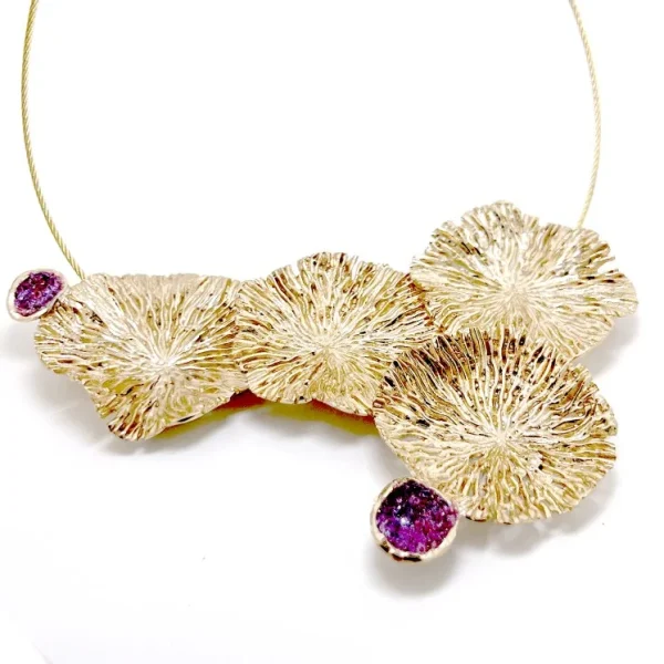 Ανακαλύψτε τη φυσική ομορφιά και την κομψότητα αυτού του μοναδικού δαχτυλιδιού από ορείχαλκο, διακοσμημένο με εντυπωσιακούς κρυστάλλους. Κάθε κομμάτι είναι εμπνευσμένο από τα βότσαλα της θάλασσας, με οργανική, ακανόνιστη φόρμα που θυμίζει τις ανεπιτήδευτες γραμμές της φύσης.
